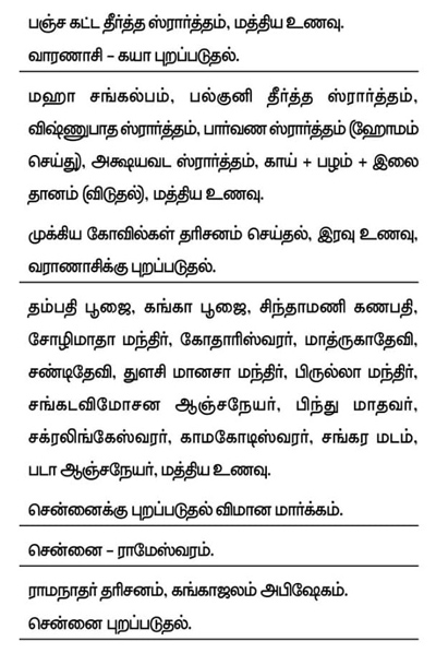 Manthram & prayogam will be same for all and no compromise at all. The difference is only in Dhaana Kaingaryam, Number of Brahmanals they want to hire for Annadhanam, Gaudhanam, Accommodation facility, vehicle arrangement etc. purely depending upon one’s financial viability. If, in a family, there are 5 or 8 brothers wanted to perform the rituals collectively, then the cost can be shared amongst themselves. That is the benefit of these packages. My ultimate aim is that one and all accomplish this LIFE TIME TASK OF PITHRU KARMA without floating it by non-performance of it, being cause of all kind of pains in one’s LIFE.